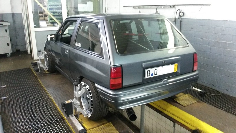 Bei der Achsvermessung mussten wir kaum etwas korrigieren, auch den Sturz haben wir mittels einer Holzlatte und einem Bandmaß ziemlich präzise vorher eingestellt.