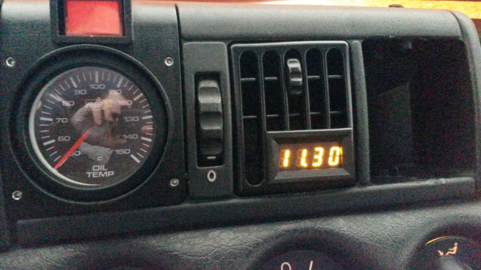 Und dann habe ich noch nach einer kleinen digitalen Uhr gesucht, da diese für die Öltemperaturanzeige weg kam. Ich habe eine kleine gefunden, welche auch noch eine Temperaturanzeige und ein Voltmeter hat. Ich habe sie in die Lüftungsdüse eingebaut und bin bis jetzt begeistert.