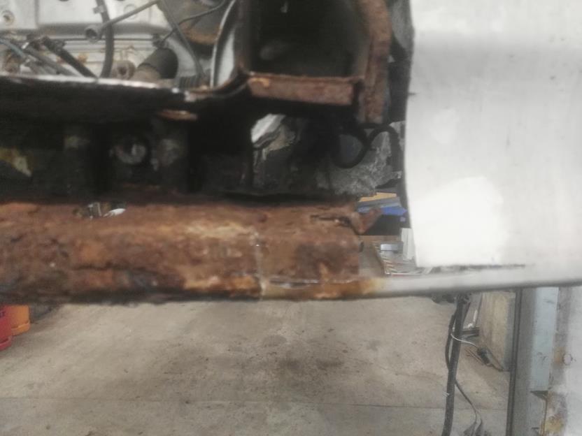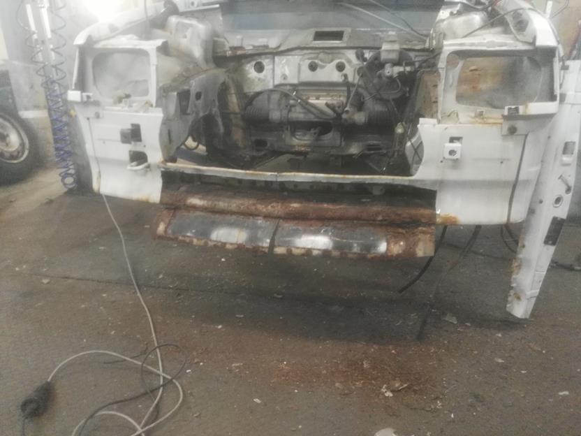 Auf jeden Fall hab ich den maroden Träger rausgeschnitten. Da war ein Stück Neuteil außendrauf gebraten. Im Rahmen sind zwei 1 cm starke Stahlplatten verschweißt. Vorne ein massives Vierkantrohr das exakt 30 mm nach vorne gerückt ist. Dadurch passen die Corsa B Zugstreben mit den originalen Haltern, welche mit dem Frontteil verschweißt sind. Die Querlenker, brauch ich glaube nix mehr dazu sagen