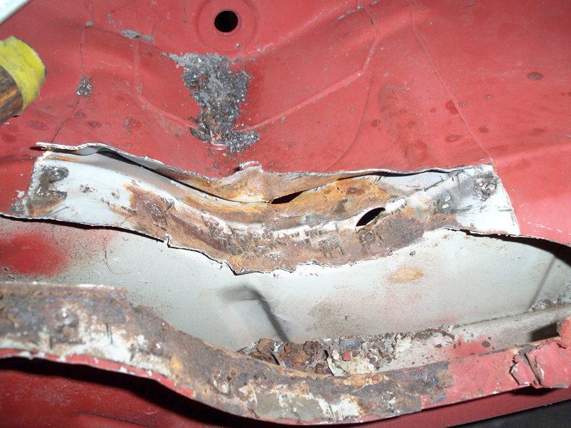 zu erst hab ich mal das alte Blech vom Innenradlauf hinterm Stoßdämpfer abgebohrt... na ja sieht net so dolle aus, aber krieg ich hin: