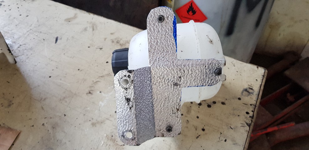 Ich werde wohl einen Kühlmittelbehälter missbrauchen und das mit Schlauchleitungen lösen. Volumen ist etwa 1,2L, aber das reicht schon aus für die paar mal spritzen. Der Einfüllstutzen soll der vom Golf 5 werden und in der Nähe der Stoßdämpferaufnahme vorne rechts montiert werden.