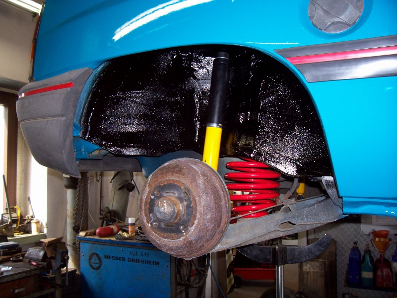 Hab mal noch paar Bilder angehangen. Kühler ist auch neu, Scheinwerfer neu, Heckklappe gecleant und Kotis von innen mit Steinschlagschutz versiegelt und lackiert. Theoretisch könnte da der Winter kommen, praktisch hält er Winterschlaf!